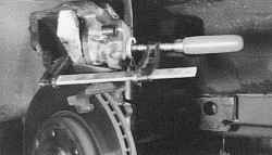 Рис. 8.17. Вдавливание поршня тормозного механизма в цилиндр с помощью струбцины. Для предохранения поршня от повреждений необходимо проложить деревянные бруски. Можно использовать также старую колодку