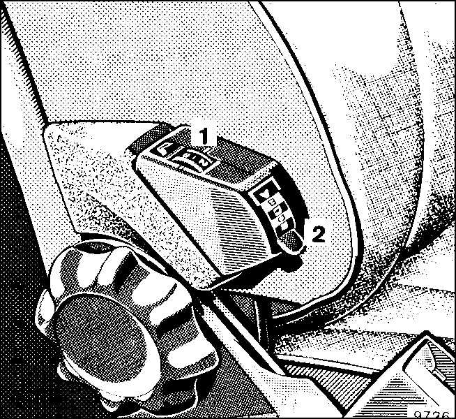 Ключ в замке рулевого управления в положение 1 или 2 ( при открытой передней