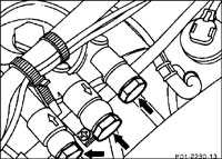 новыми уплотнительными прокладками к топливному фильтру. Снимите шланговые